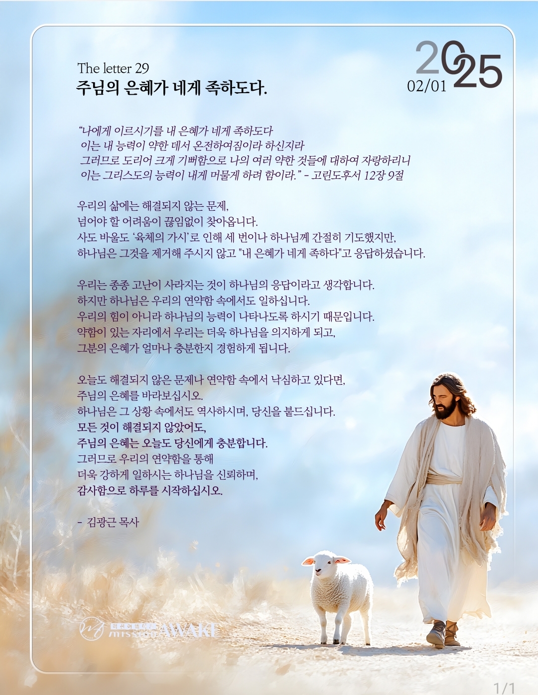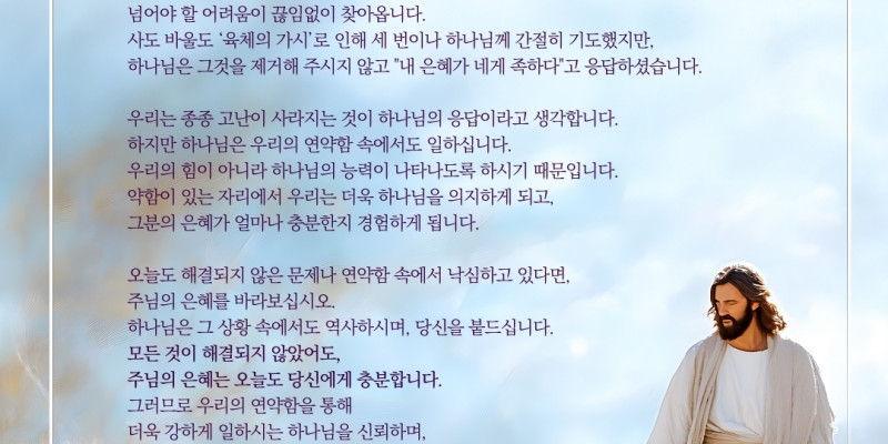 나에게 이르시기를 내 은혜가 네게 족하도다\" 고린도후서 12장 9절