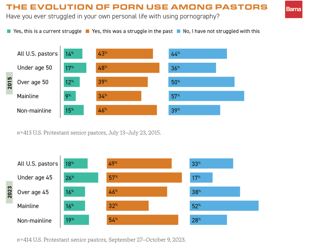 다음은 Barna가 Pure Desire Ministries와 협력하여 제작한 포르노 사용에 대한 최신 연구인 Beyond the Porn Phenomenon의 최신 트렌드 중 일부이다.