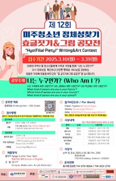 한인 이미사회에서 자라나고 있는 다음세대 청소년들이 자기 정체성과 성경적 가치관을 확실하게 가질 수 있도록 사역하고 있는 효사랑선교회(대표 김영찬 목사)가 제12회 효 글짓기&그림 공모전을 개최한다.