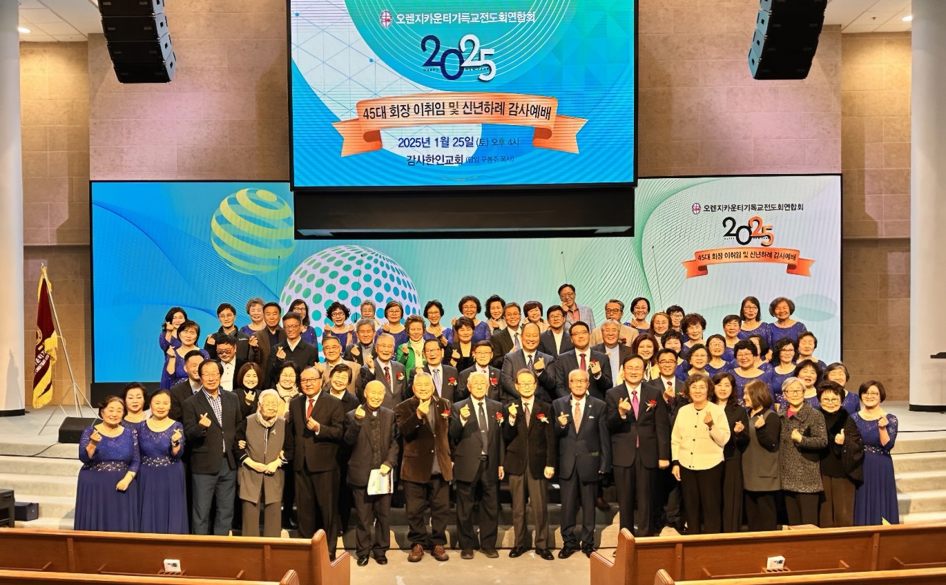 평신도연합 단체로 활발하게 활동하고 있는 OC기독교전도회연합회 (신임회장 한성준, 이하 연합회)가 45대 회장단 취임식 및 신년하례예배를 지난 1월26일, 감사한인교회(구봉주목사 시무)에서 교계 관계자 100여명이 참석한 가운데 은혜롭게 진행했다.