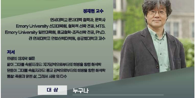 “우리 믿음 되돌아보기”라는 주제로 열리는 이번 강좌는, 기독교 신학과 철학을 깊이 있게 연구한 정재현 교수가 강사로, 신앙의 본질을 되새길 있는 근본적인 질문들에 대한 탐구를 통해 참석자들이 자신의 믿음을 더욱 깊이 이해하고 성찰할 수 있는 장을 마련하고자 기획되었다.