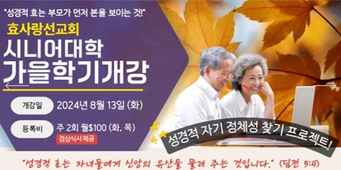 [미주교계뉴스] 효사랑선교회, 가을학기 시니어대학 개강
