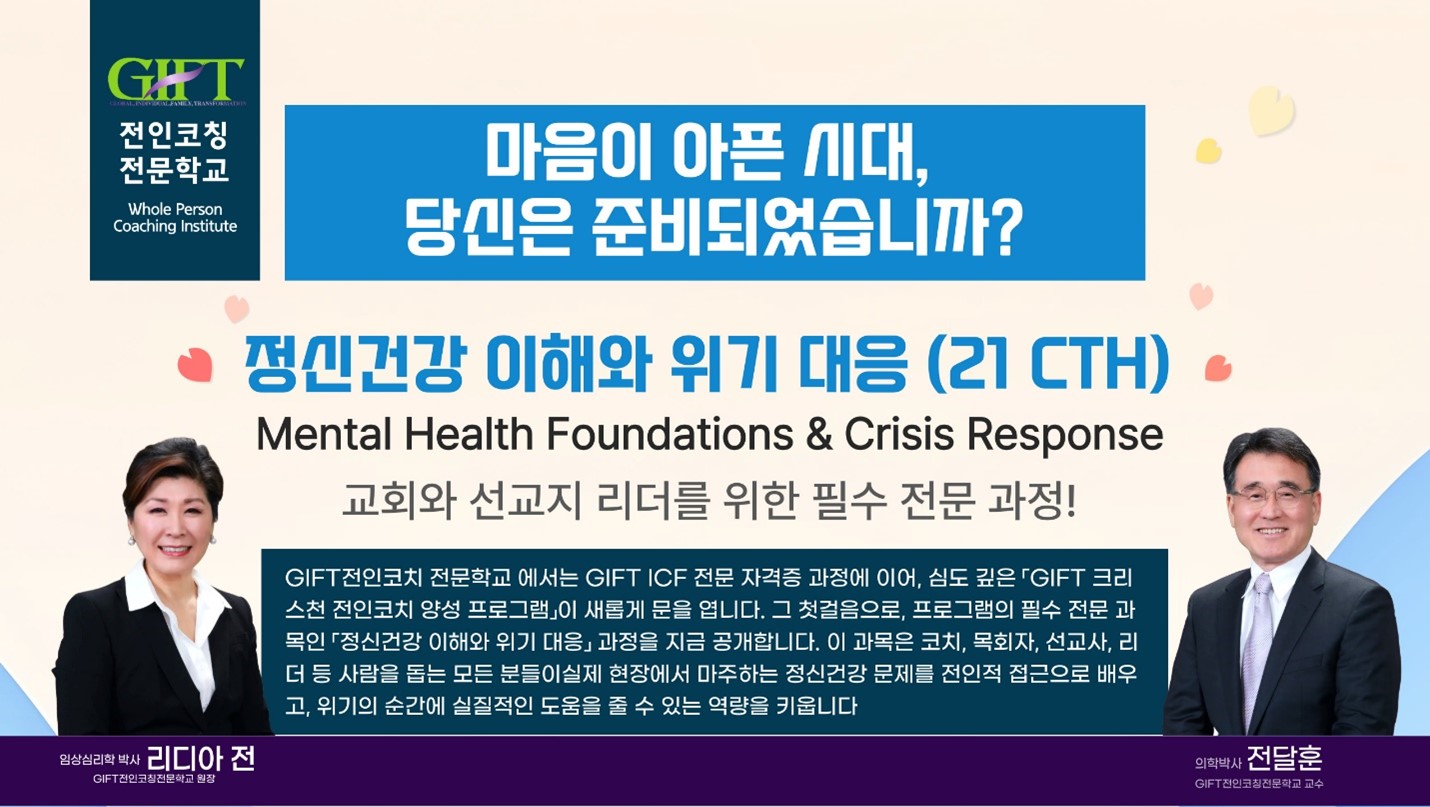 문의 및 신청:웹사이트: https://giftcoachinginstitute.com/ko/714-298-1115 info@giftcoachinginstitute.com