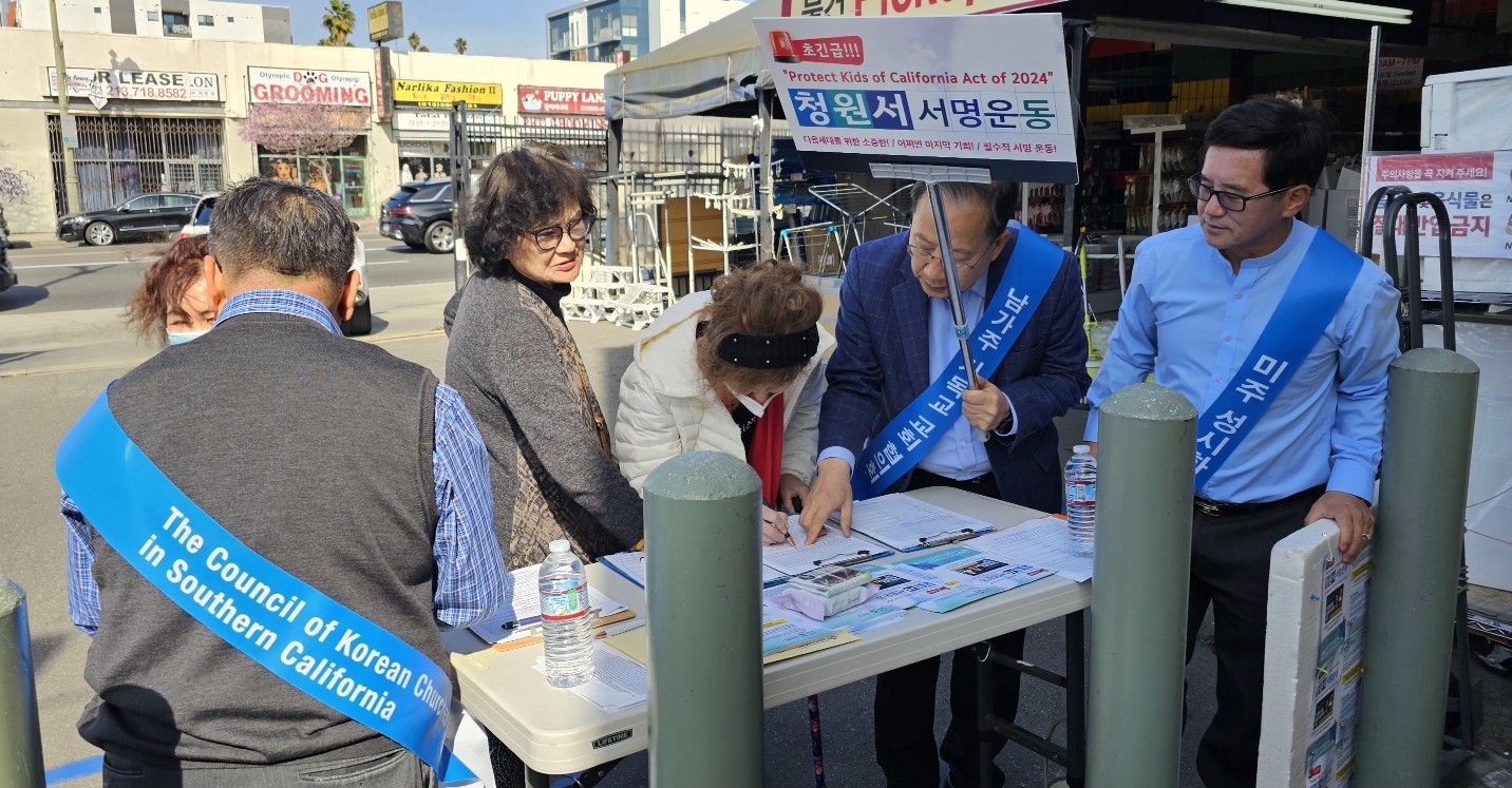 LA와 오렌지카운티에서 확산되고 있는 자녀지키기 서명운동(제공 은혜한인교회). 교회측은 주일예배 후 진행해서 하루동안 1,000명의 유권자 서명을 받았다고 전했다. 교회측은 마감일인 4월13일까지 1만명의 서명을 목표로 하고 있다고 밝혔다.