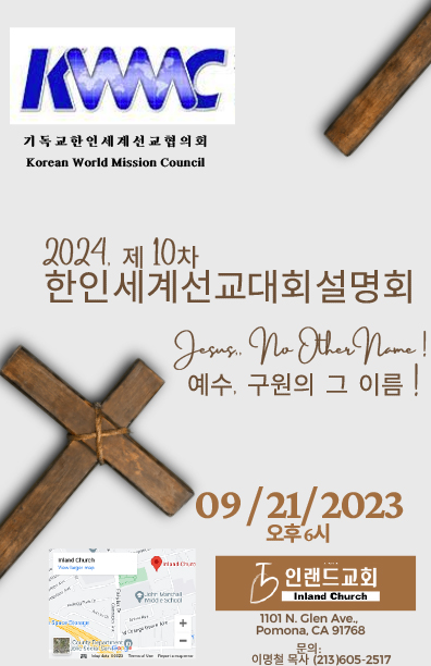 또한 KWMC는 오는 21일(목) 오후 6시 인랜드와 LA 동부지역 75개 한인 교회 담임목사, 선교담당목사, 선교부 장로들을 초청해서 인랜드교회(담임 안 환 목사)에서 설명회와 질의응답시간을 마련하는 등 남가주 동부 지역 설명회를 시작으로 LA 주변 6 지역을 순회하면서 내년 6월까지 지속적으로 설명회 시간을 마련할 예정이다.