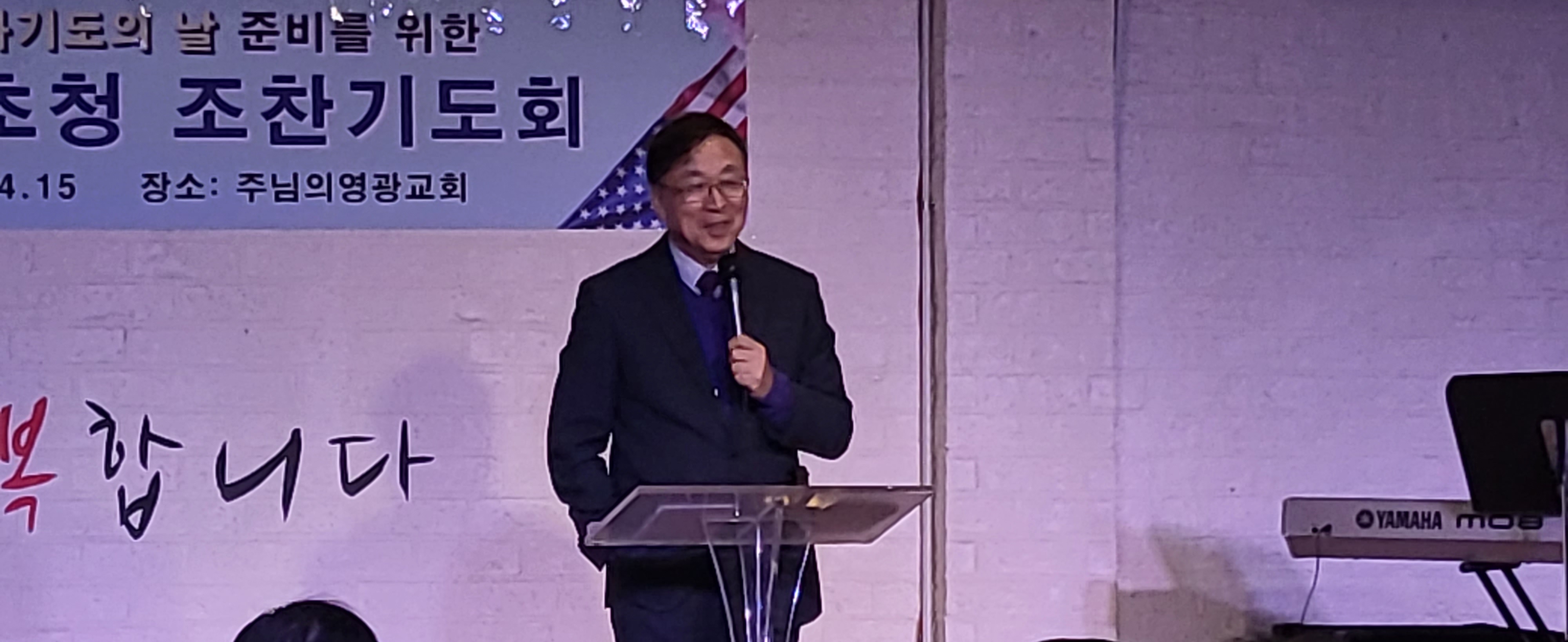 국가기도의 날을 준비하는 미주성시화운동본부(공동회장 송정명 목사, 진유철 목사) 지난 4 15 토요일 오전8, 주님의영광교회에서 남가주교게지도자 초청 특별조찬기도회를 열어 100여명의 목회자와 언론인, 관계자들이 참석한 가운데 미국이 당면한 영적 위기의 심각성을 강조하며 남가주 한인교회들과 단체들의 국가 기도의 참석을 독려했다.