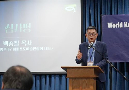 백승철 심사위원장이 심사평을 하고 있다