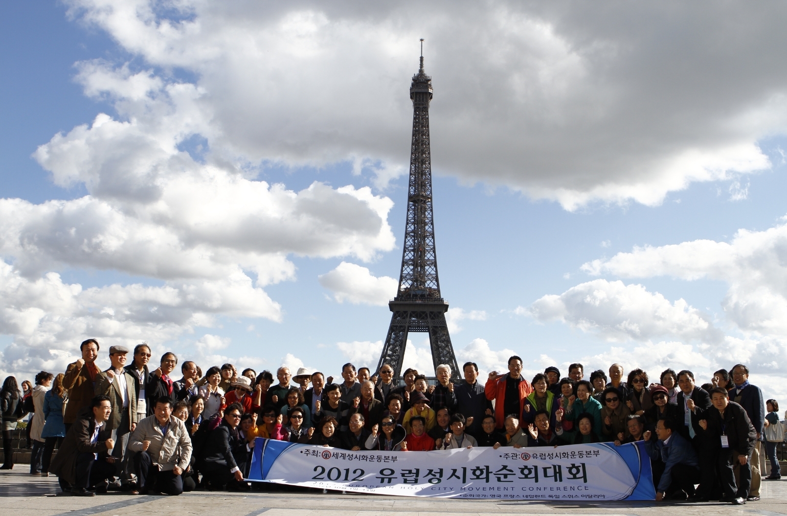 유럽성시화순환대회에서 참석자들이 기념촬영을 하고 있다.
