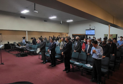 새벽기도 참석자들의 기도 인도자를 따라 기도를 하고 있다.오렌지카운티 지역 5개 한인 교계단체들이 힘을 모아 지역의 21명 30~50대 한인 목회자들을 강사로 선정해 21일 연속 새벽기도회로 진행하는 제1차 OC영적대각성다니엘새벽기도회가 지난 1일부터 시작됐다.여의도순복음교회를 중심으로 구성된 순복음북미총회 소속 미라클교회 박재만 목사부터 21인 21색의 설교 퍼레이드가 막을 열었다.다니엘새벽기도회는 새벽의 미명이 채 가시기 전인 새벽 5시 30분에 시작됐다. 기도를 통한 영적인 각성을 이루고 미국과 한국 교회의 재부흥을 염원을 모으기 위해 새벽을 깨운 OC지역의 한인 기독교인들이 모였다.미리 선정된 OC지역 5개 교계단체 소속 지도자들이 예배 전 찬송과 예배의 시작을 알리며 기도회가 시작됐다. 이어서 각 기관 대표들로 구성된 평신도 지도자들이 성공적인 기도회 개최와 OC지역의 영적각성을 위해 다시 한번 기도하고 설교가 이어졌다.새벽기도회인만큼 축도가 끝나면 주어진 그 날의 기도 제목과 자신들의 가지고 온 기도 제목을 가지고 자유롭게 기도하도록 진행됐다.첫날 박재만 목사는 ‘미션임파서블’이라는 제목으로 설교했다. 박 목사는 데살로니가전서 5장 16절부터 18절까지의 말씀을 인용해 “항상 기뻐하라, 쉬지말고 기도하라, 범사에 감사하라는 미션은 현실 속에서 사실상 불가능한 명령”이지만 이 명령을 순종할 때 하나님의 도우심을 경험하게 될 것이라고 강조했다.이번 ‘OC영적대각성다니엘새벽기도회’는 OC지역에서 활동하는 중대형교회 목회자들과 5개 한인 교계 단체들이 연합해 지역의 영적 각성을 이끌고 차세대 한인 목회 지도자들을 발굴한다는 계획으로 추진됐다.30대~50대 사이의 젊은 목회자 21명을 발굴해 새벽예배를 인도하게 하고 지속적인 교류를 통해 목회 연대를 강화한다는 목적으로 이뤄졌다.이번에 선택된 21명의 설교자는 각 기관 관계자들과 중대형교회 목회자들이 추천한 목회자들로 건전한 신학사상을 지니고 있으며 목회와 선교에 대한 확실한 사명감을 지닌 목회자들로 선정됐다.21명은 첫날 박재만 목사(미러클포인트교회)를 시작으로 김가형 목사(가주장로교회), 장범원 목사(남가주온유한교회), 윤봉원 목사(미주서부교회), 이천 목사(브레아노엘교회), 서철원 목사(뉴헤브론교회), 박승우 목사(섬김의교회), 정인수 목사(OC갈보리교회), 이근환 목사(함께하는교회), 조진용 목사(바인교회), 이창남목사(주님의손길교회), 조준민 목사(치노밸리아름다운교회), 박정기 목사(The Rock Church), 최신준 목사(정금교회), 황여호수아 목사(남가주프라미스교회), 이태희 목사(주심교회), 정중한 목사(남가주믿음의교회), 서민수 목사(방주교회), 곽태규 목사(생명의길교회), 이진환 목사(순전한교회), 추석근 목사(선한뜻교회) 등의 순서로 이어진다.연속 새벽기도회가 끝나는 다음 날인 25일 오전 9시부터 오후 4시까지는 은혜한인교회(1645 W. Valencia Dr. Fullerton. CA)에서 목회자 세미나가 개최된다. 세미나는 “위드 코로나 시대에 목회적 위기, 어떻게 극복할 것인가?”라는 주제로 남가주 지역에서 중대형 한인교회를 이끄는 현지 목회자들이 참석해 경험과 방법 등을 나눌 계획이다.세미나는 은혜한인교회 한기홍 목사를 비롯해, 에브리데이교회 최흥주 목사, 베델한인교회 김한요 목사, 나성순복음교회 진유철 목사 등이 강사로 참여한다.한편 이번 행사는 OC지역에서 활동하는 교계단체 지도자들이 매주 모여 진행하는 정기회의를 통해 논의됐다. 팬데믹 이후 지역의 한인 목회자들에게 새로운 용기와 도전이 될 기회가 필요하다는 점에 의견을 같이했다. OC기독교교회협의회, OC한인목사회, OC기독교전도회연합회, OC장로협의회, OC여성목사회 등이 참여하고 있다. 문의(714)722-4805.