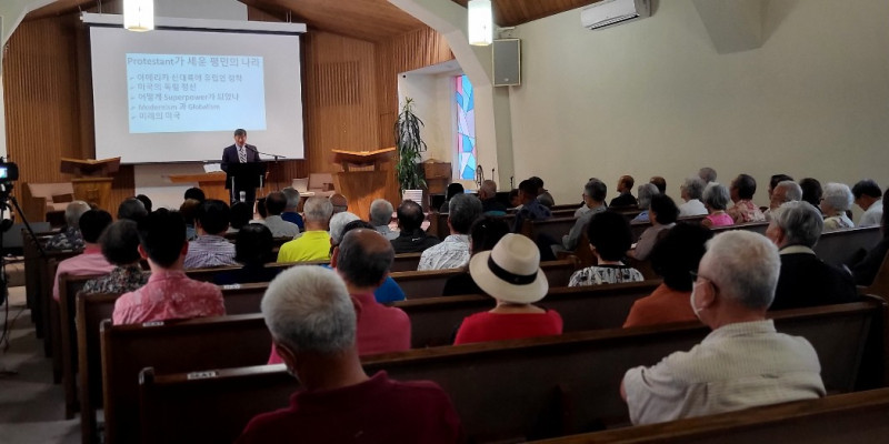 미주교계뉴스 카테고리 전체열린 분류 미주교계뉴스글로벌뉴스오피니언건강칼럼핫클립특집특별기고인터뷰한국뉴스 [미주교계뉴스] 미국 역사 바로알기 작성일 : 2022-06-21 목록 페이지 정보 본문 유튜브 등을 통해 미국과 국제사회 바로알기 개인방송를 진행해 온 마이클 심 박사 강연회가 지난 11일 풀러튼 참사랑교회에서 개최됐다. 이번 강연회는 200여명의 한인들이 참석한 가운데 미국의 건국 배경과 미국이 강대국으로 성장한 과정 등을 확인했다. 마이클 심 박사는 매사추세츠 대학에서 국제경제학 박사학위를 받은 것으로 알려졌다. 현재 매사추세츠 로웰대학 경제학과 교수로 활동하고 있다. 마이클 심 박사(강대상 위)가 강연하고 있다. 크리스천헤럴드 press@christianherald.com 213-994-0888 페이스북 공유 트위터 공유 이전글동성 입맞춤 ‘버즈 라이트이어’ 14개국서 상영 금지 22.06.21 다음글월드미션대학교 31회 학위수여식 개최 22.06.21 댓글 0 댓글목록 등록된 댓글이 없습니다.