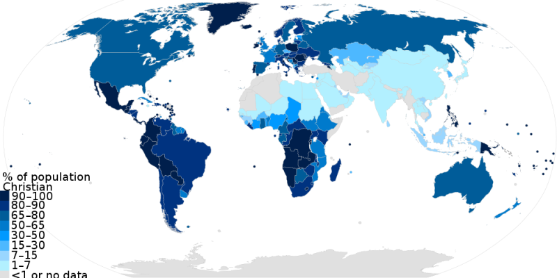 퓨리서치가 지난 2011년 조사한 세계 기독교인구 분포도.